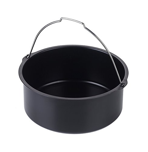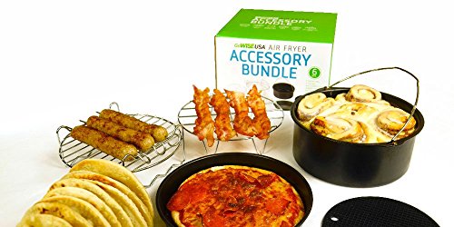 This universal 6 piece accessory set fits all air fryer brands 3.7 Qt to 5.8 Qt Air Fryers. The set includes a 7" baking pan, 7" pie/pizza pan, insert rack, insert rack with 3 skewers and a toasting/warming rack. Plus a silicone resting mat/pot holder.Feature