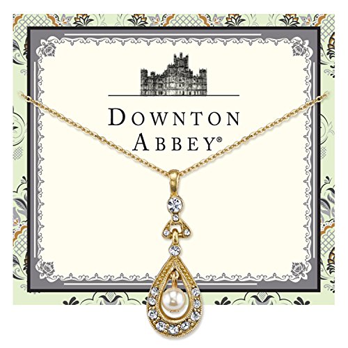 Downton Abbey "Carded" Gold Tone Crystal and Pearl Pendant Necklace, 16"