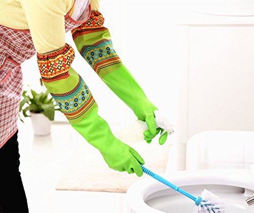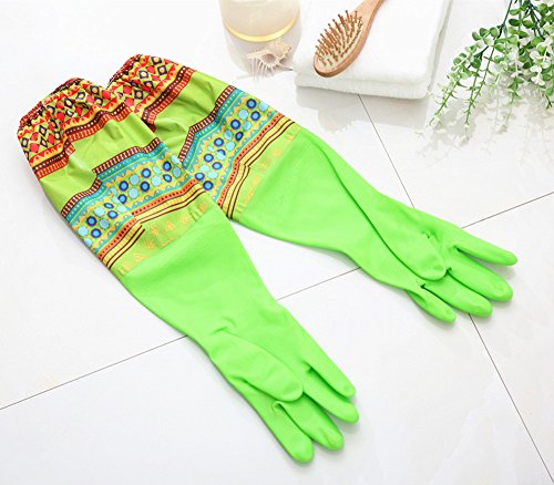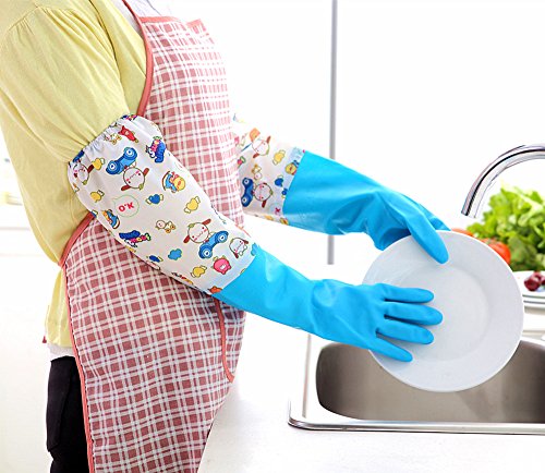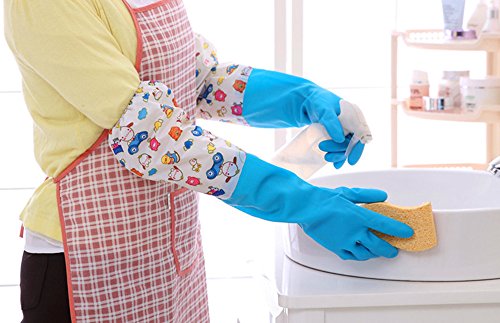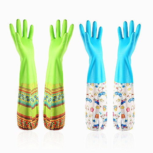 Household cleaning gloves Dishwashing gloves Latex Waterproof gloves (2-Pairs)Reusabl,Free get Cleaning cloth(2-Pack),Suitable for ladies. (Long)