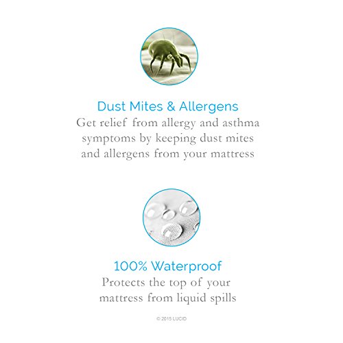 - Feature : 100% Waterproof - repels all liquids including bodily fluids, perspiration, urine and accidental spills / Hypoallergenic 100% cotton terry surface and polyurethane backing inhibits allergy-causing dust mites and bacteria from living in your mattress / Fully elasticized fitted sheet style fits all mattress depths from 6" to 22" / Ultra-thin design is breathable, quiet and sleeps cool without changing the feel of your mattress / 15-Year product warranty guards against manufacturer defects