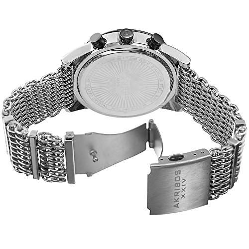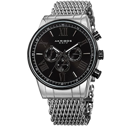 -. Title : Akribos XXIV Men's Swiss Quartz Multi-Function with Silver-Tone Case with Black Sunray Dial on a Shark Mesh Stainless Steel Bracelet Watch AK919SSBK
