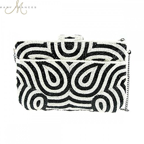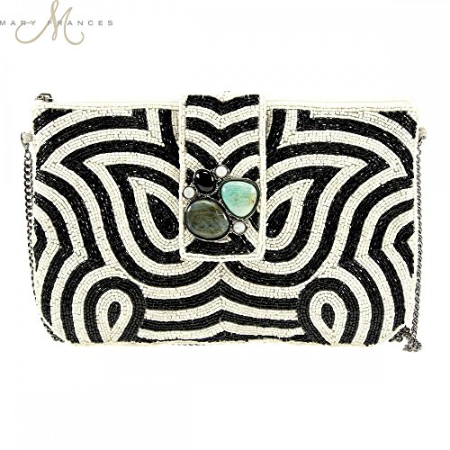 -. Binding : Accessory -. Brand : Mary Frances -. Color : Black/White -. Department : womens -. EAN : 0634010770709 -. Feature : Hand crafted with genuine gemstones in custom Mary Frances setting - Lapis Lazuli / Soft structure fully beaded envelope shape clutch / Use as a clutch or with the optional chain strap -. Model : BAG S770 -. MPN : BAG S770 -. PartNumber : BAG S770 -. ProductGroup : Shoes -. ProductTypeName : HANDBAG -. Title : Mary Frances Wonder Struck Clutch Handbag -. UPC : 634010770709 You're sure to be in awe when you look at this stunning black and white patterned bag. Thousands of black and white beads swirl before your eyes. Fully beaded soft body envelope style clutch with cross-body chain strap, zipper and magnet flap closure and 1 interior pocket. Custom Mary Frances gemstone setting includes: Labradorite, Amazonite, Black Onyx and Replicated Pearl: Labradorite is believed to protect against negativity and encourage acceptance, patience and forgiveness.