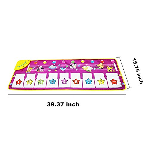 Big Size(39.37 *15.75 *0.79 inch)Baby Favorites Musical Toys can touch and step on. Music Sound Reward Baby's Natural Kicking and Touching.Children can go to touch, also can use feet to kick up. Learn the baby can fondle admiringly certainly.
