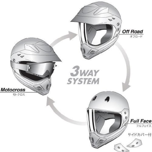 ヘルメット特徴:3wayシステム搭載、エアベンチレーションシステム、UVカット、ハードクリアシールド、ワンタッチ着脱式シールド交換システム、洗えるフル着脱内装、リアリフレクトステッカー