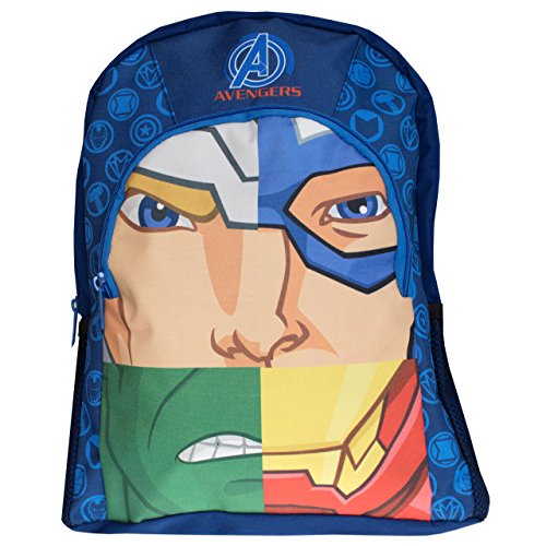-. Binding : Toy -. Brand : Marvel -. Color : Multicoloured -. EAN : 5036278068560 -. Feature : Marvel Avengers Backpack / This cool Avengers bag comes with a bright design in a blue background and an eye-catching P.R.Int on the front pocket of the Avengers' face in 4 squares. / A great option for days out, sleep overs and to take on his training as a SHIELD agent. / With adjustable padded straps and zippered pockets, this Marvel rucksack will soon become his go-to for every day. / Officially licensed Marvel Merchandise, exclusively designed for Character US. -. IsAdultProduct : 0 -. Label : Trademark Collections -. Manufacturer : Trademark Collections -. ProductGroup : Apparel -. ProductTypeName : TOYS_AND_GAMES -. Publisher : Trademark Collections -. Size : One Size -. Studio : Trademark Collections -. Title : Marvel Avengers Boys Backpack