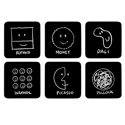 -. Binding : Kitchen -. Brand : MoMA -. Color : Black -. EAN : 0708444933167 -. Feature : Set of 6 coasters features illustrations by Donald Seitz (1991) / Coasters depict the history of art with smiley faces altered to reflect the styles of famous artists / Laminated MDF with polypropylene coating and velveteen backing; wipe clean / Measures: 3.75" x 3.75" -. Label : MoMA -. Manufacturer : MoMA -. MPN : WCF-M93316 -. PackageQuantity : 6 -. PartNumber : WCF-M93316 -. ProductGroup : Kitchen -. ProductTypeName : KITCHEN -. Publisher : MoMA -. Studio : MoMA -. Title : Museum of Modern Art History of Art Collection Coasters -. UPC : 708444933167