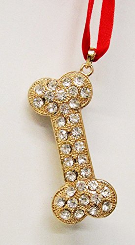 Christmas Dog Bone Shaped Gold Ornament with 68 Rhinestones