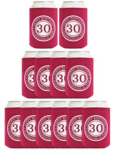 30th Birthday Gift Celebrating 30 Years 12 Pack Can Coolies Drink Coolers Mag...