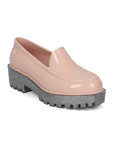 -. Title : Melissa Women Jelly Loafer - Glitter Lug Sole Slip On Creeper - Trendy Fashion Fun Platform Shoe - PANAPANA