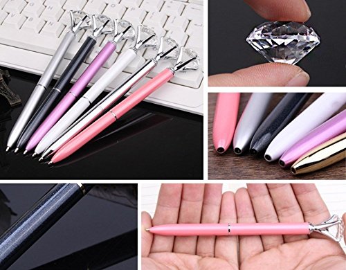 -. Feature : size:5.5 in x 0.3 in,Diamond-0.8 in / Material:Made with a colorful metal that is guaranteed to be durable and well-constructed. / Twist action to open / revolve open, international standard black color ink can be refilled. / Unique design; lovely diamond is attached on top of the colorful metal ballpoint pen. / Perfect for school,office,family use.Great gift for your kids, friend or personal collection.