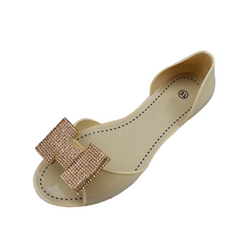 -. Title : Dear Time Women Slip On Peep Tos PVC Jelly Shoes Beige