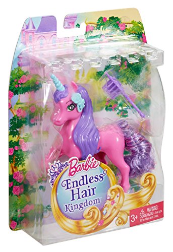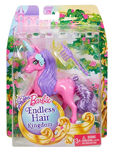 Barbie delivers a new twist on hair! With gorgeous long tails, these Barbie pets are ready for fabulous new styles created by you! Each pet comes with a detachable tail that can be swapped among other pets in the collection and includes a brush for styling. Choose from a pretty pink unicorn, sweet white dog or adorable pink bunny -- or collect them all for the ultimate mix-and-match fun! Use the hairbrush included with each pet to brush out a style and start anew. There are endless ways to style these pets' hair to match the endless stories to be told. Collect all of the dolls and pets from the Endless Hair Kingdom for tons of hair-play fun because with Barbie, you can be anything (each sold separately, subject to availability)! Includes Barbie pink unicorn with detachable purple tail and a hairbrush. Each sold separately, subject to availability. Colors and decorations may vary.Feature