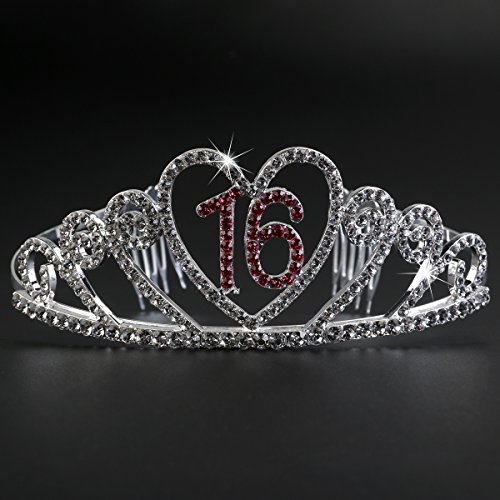 PIXNOR Birthday Party Rhinestone Crystal Tiara Crown - Sweet 16 Birthday Tiara