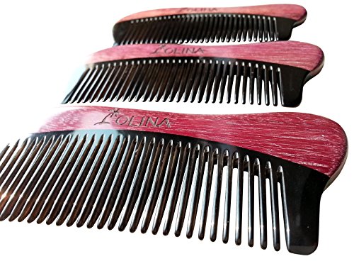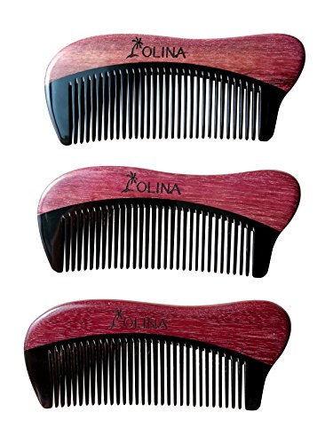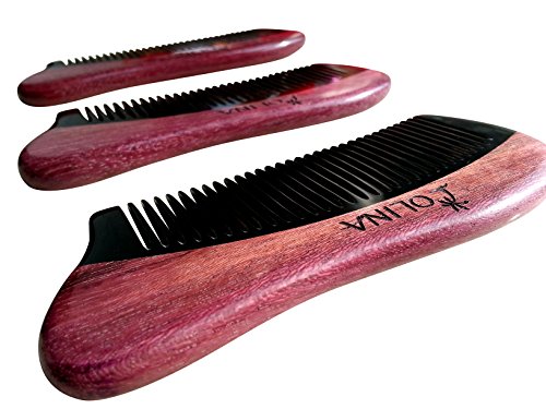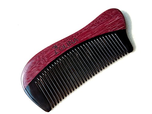 Unique Gift - Olina No Static Handmade Premium Quality Natural Black Ox Horn & Purple Heart Wood Hair Comb Beard Comb Moustache Comb with Natural...