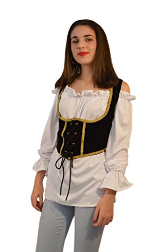 -. Brand : Wonder Clothing -. Color : White -. Department : womens -. Feature : Includes one shirt. / Excludes vest, pants, belt, and shoes. / Available in sizes small, medium, large, and x-large. / Great for Renaissance festivals and plays -. PackageQuantity : 1 -. ProductGroup : Apparel -. ProductTypeName : ADULT_COSTUME -. Title : Renaissance Long Sleeve White Blouse Women Shirt