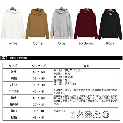 -. Feature : フード付きパーカー 裏起毛裏フリースシンプル無地スウェットパーカープールオーバー レディース / 【カラー】 ホワイト/ キャメル/ グレー/ ボルドー/ ブラック / 【サイズ】ワンサイズ ※サイズの詳細につきましてはサイズ画像の表記をご確認下さい。 / 【素材】コットン&ポリエステル / 【伸縮性】あり【裏地】裏起毛 【透け感】なし