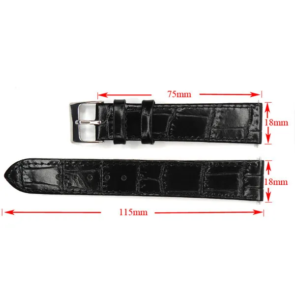 시계 스트랩 18 미리메터 시계 밴드 스테인레스 스틸 버클 블랙 정품 가죽 부드러운 얇은 벨트 시계 시계 시간 무료 배송