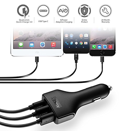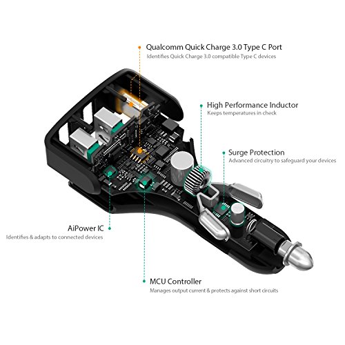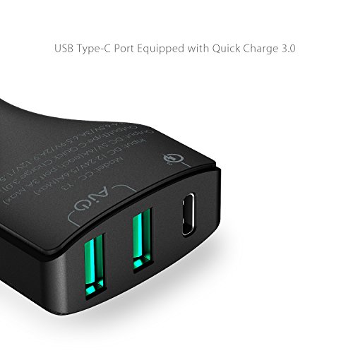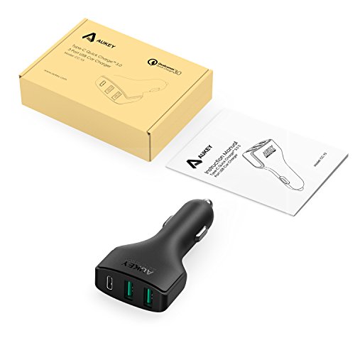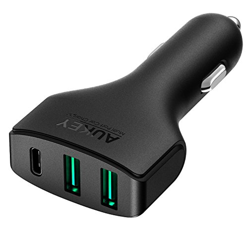 AUKEY Car Charger with USB C Port & Dual AiPower Ports for LG G5, Nexus 6P/5X, Samsung, iPhone & More | Qualcomm Certified