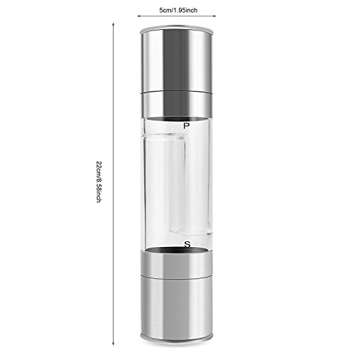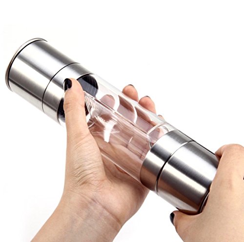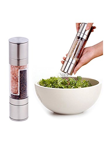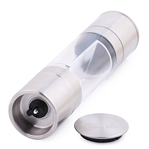 Studio : Tatra Pro Publisher : Tatra Pro Product Description Nothing can bring out the flavor in your food the way appropriate spicing does. The right amounts and blends of salt 'n pepper will render you a culinary artist at every meal. Additionally, nothing complements a set table more than a smart combo piece of salt and pepper grinders.The salt grinder and pepper grinder are both built with an adjustable ceramic grinding mechanism that allows you to manually choose the coarseness of the seasoning, ranging from fine to coarse. The grinders sit upright on the clear acrylic sphere base; the seasoning never leaves a mess on your table or counter. With covered lid caps, our salt and pepper grinders keep your spices fresh longer. New cooking tools make great gifts!Tatra Pro Salt and pepper combo grinders in the stainless finish will fit well in nearly all kitchens. Our Guarantee to You: If you're not happy, we're not happy. We have a 100% money back guarantee on all of our products. If the product is defective or damaged WE WILL REPLACE IT FOR YOU, no questions asked. We are in business because of you! YOUR SATISFACTION IS OUR GOAL. Purchase this beautiful 2 in 1 grinders by selecting the "Add to cart" button today. 0