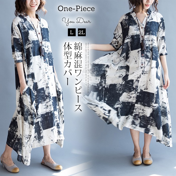 ・リラックスなムードと両立できて、スタイルアップも期待できる1枚♪・ふわっと広がるAラインシルエットが女性らしさを存分に引き出してくれ☆・ふんわりと優しい肌あたりで、さらに心地よくて涼しく感じられる☆★キーワード検索:ロングワンピース 秋 シャツワンピース ロング丈 マキシワンピース ロングシャツワンピース ゆったり 綿麻混ワンピース コットンリネン ワンピース 体型カバー 大きいサイズ 着たせ 30代 40代 50代 60代 着痩せ お洒落 おしゃれ オシャレ 秋ワンピース L 2L 黒 プリント ・塩素系漂白剤は使用しないでください。★素材:ポリエステル★サイズ(CM):L:バスト106 肩幅39 袖丈33 袖口30 裾回し256 着丈113XL:バスト110 肩幅40 袖丈34 袖口31 裾回し260 着丈115※サイズは人の手によって測っているため、1-3cmの誤差がある場合がございます。予めご了承下さいませ。