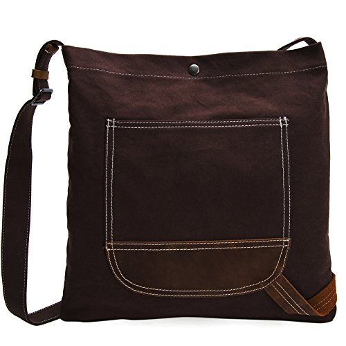 -. Title : Oversized Canvas Crossbody Bags Simple Retro Genuine Leather Trim Shoulder Bag Satchel Purse