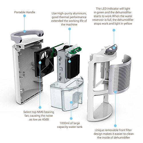 CONVENIENT CLEANING: Unique removable front filter design makes it easier to clean the inside of dehumidifier and extended the working life of the machine