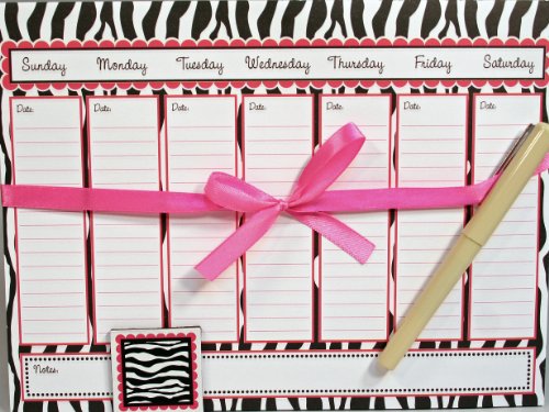 Creative Hobbies® Magnetic Memo Weekly Calendar Notepad Set, 52 Sheets with Pen & Decorative Magnet - Zebra Design