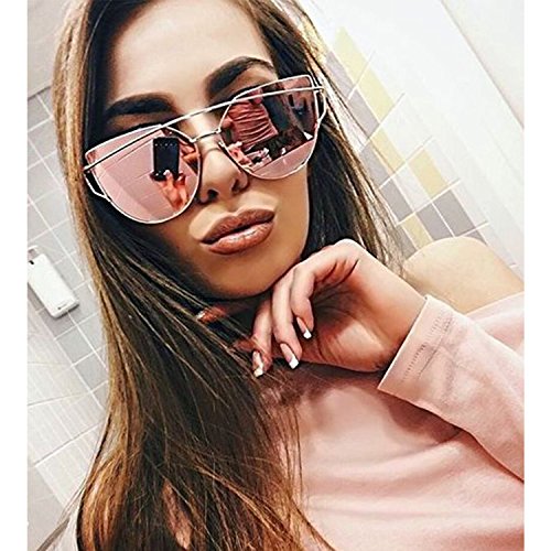 Large Oversized Cat Eye Sunglasses Metal Frame Flat Mirror Lens Women Fashion Purple Mirrored