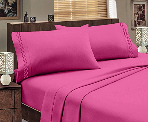 Beverly Hills Chevron Collection 1800 Series Ultra Soft Wrinkle Resistant Solid Color Sheet Set (Twin, Hot Pink)