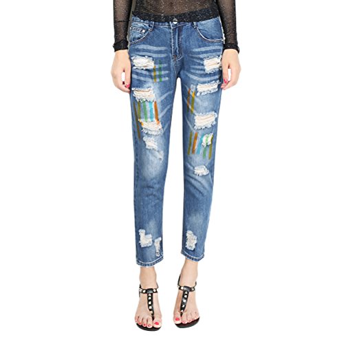 -. Binding : ウェア&シューズ -. Brand : Zhhlinyuan -. Department : レディース -. Feature : Asian size running small, please choose the bigger size than normal to wear. / Fashion broken and color graffiti design. / Easy to match a variety of clothes. / Two colors are available for you. / Hope you will love it. -. ProductGroup : Apparel -. ProductTypeName : PANTS -. Title : Zhhlinyuan 高品質のパンツ Casual Womens Color Graffiti Washed Holes Jean Pants ファッション Denim Slim Fit Jeans