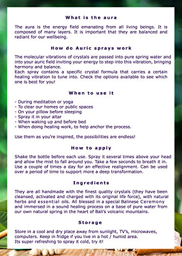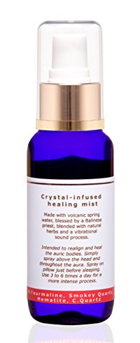 Crystal Infused Healing Aura Mist with Pure Essential Oils, Black Tourmaline, Smokey Quartz, Hematite & Clear Quartz. “Grounding” Spray made in Bali, blessed by Balinese Priest. 100 ml/3.4 fl.oz.