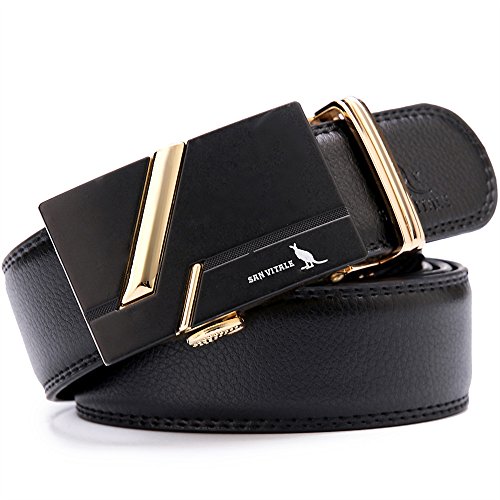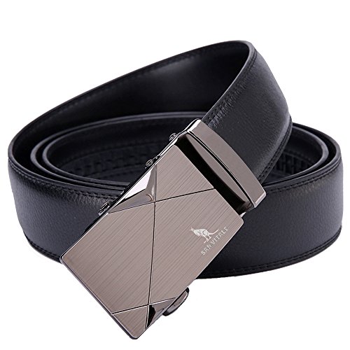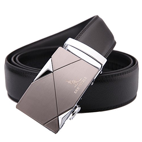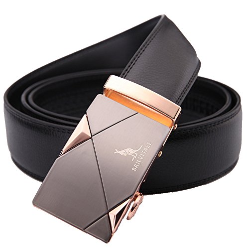 SIMPLE FASHION - Automatic Buckle Cowskin Split Leather Belt for Men. Simple style suitable for business and leisure.