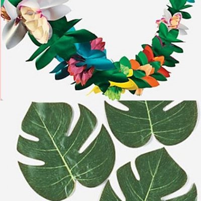 LUAU LOT - 12 TROPICAL LEAVES AND TROPICAL TISSUE GARLAND SET