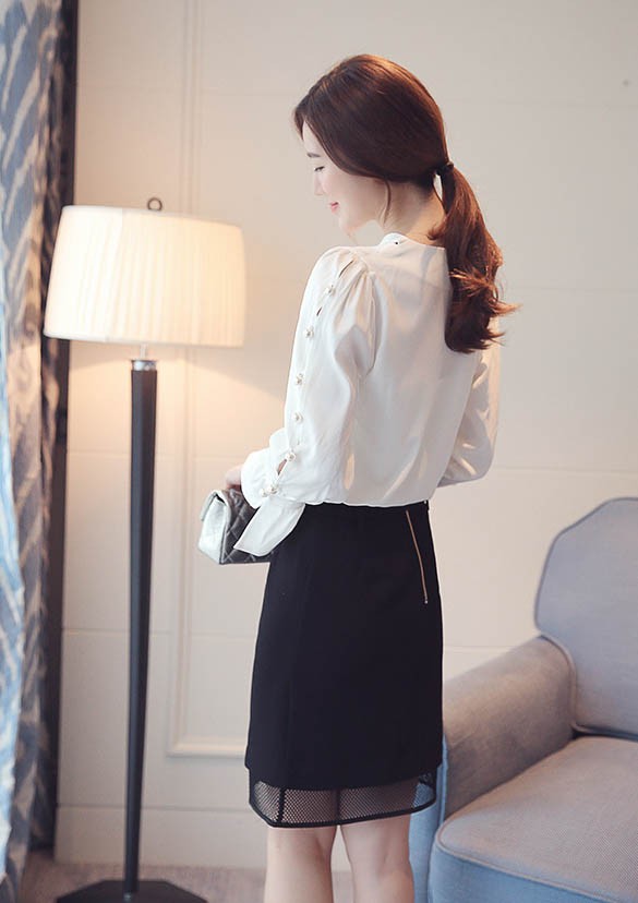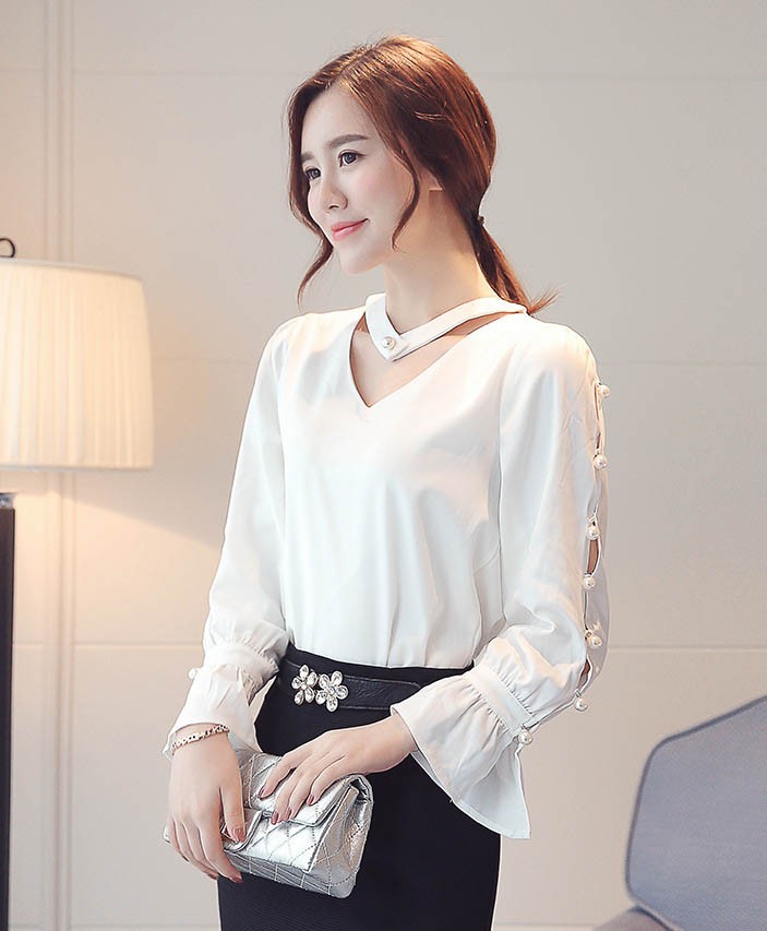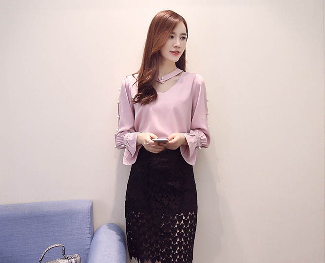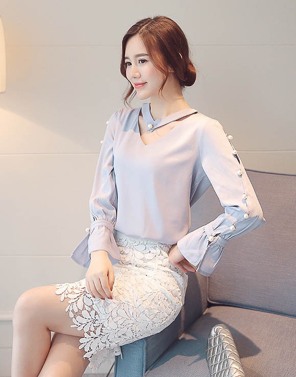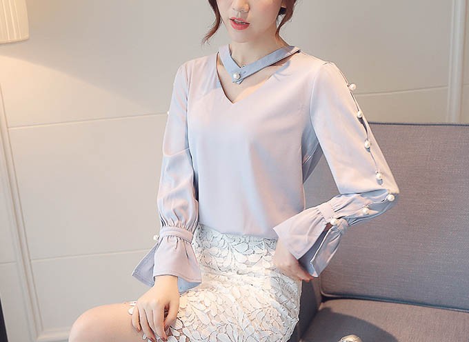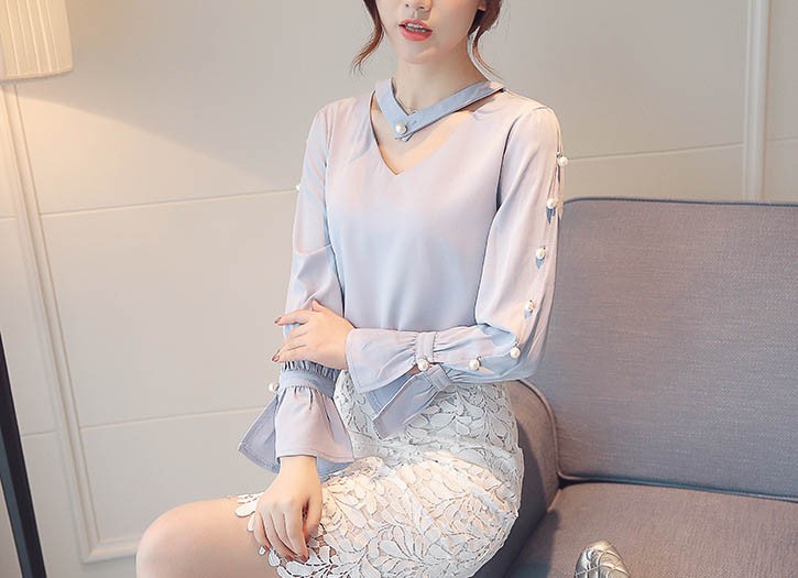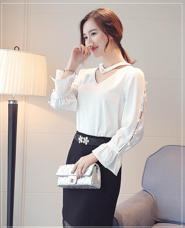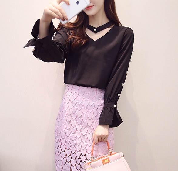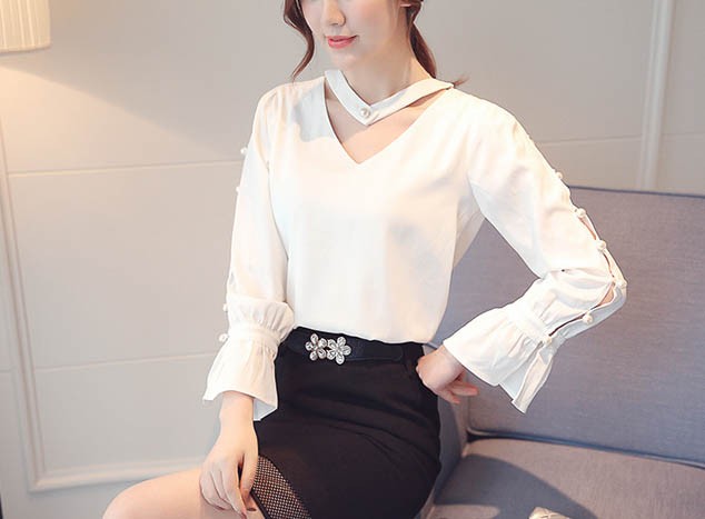 【入荷後営業日2,3日以内出荷予定 通関待ちや不良により出荷遅くなる場合はメールにてご連絡いたします。メール受信設定によっては正常に受信されない場合はございますので、 弊社からのメールを予め受信頂くようご設定くださいませ。】 トップス シャツブラウス フレア袖 ダブルVネック ネックレス風 大人可愛い レディス レディース 春 新作真珠付き上品フレア袖シフォンブラウス◆サイズ:S着丈56肩幅35袖丈55胸囲82M着丈57肩幅36袖丈56胸囲86L着丈58肩幅37袖丈57胸囲90XL着丈59肩幅38袖丈58胸囲942XL着丈60肩幅39袖丈59胸囲98◆素材:ポリエステル