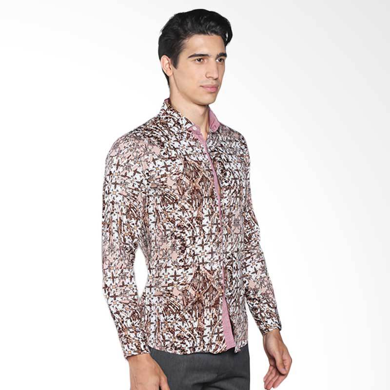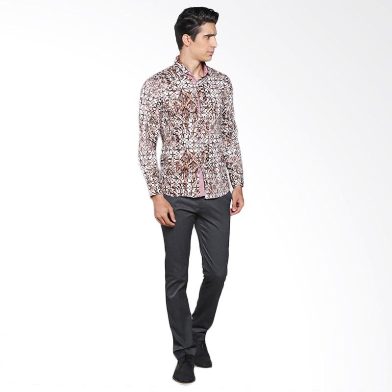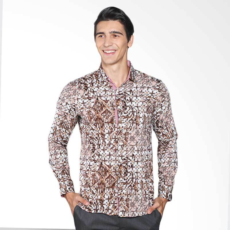 VM Slimfit Casual B-164 Kemeja Batik Pria - Brown