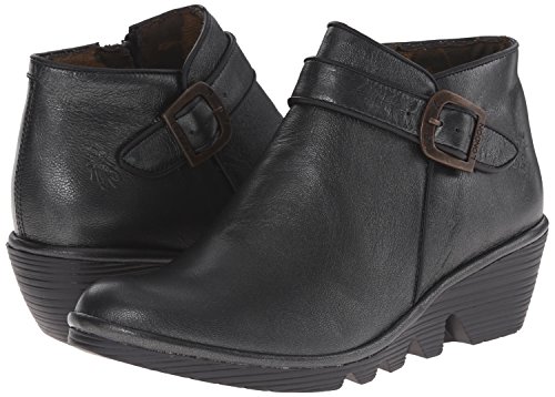 These women's Pary Ankle Boots by Fly London offer a chic style you'd come to expect from the brand. Made of a leather upper with a graphite hue, these wedge heels have a 2'' lift while the buckle detailing at the instep provides visual interest. These zip-up boots have a round toe and emphasize comfort with a synthetic lining and cold padding at the toe and heel. Made of leather in a graphite hue Leather strap across the vamp with buckle detailing at instep 2'' wedge heel Round toe Synthetic lining Gum rubber sole Cold padding at heel and ball of foot