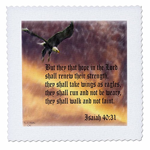 3dRose qs_27419_3 Isaiah 40-31 Bible Verse with Eagle Against A Troubled Sky Quilt Square, 8 by 8"