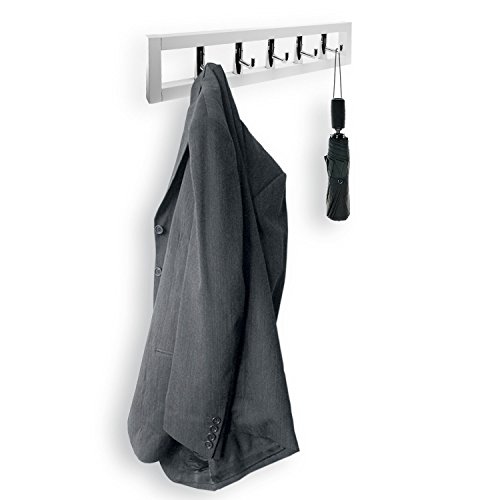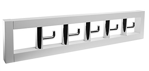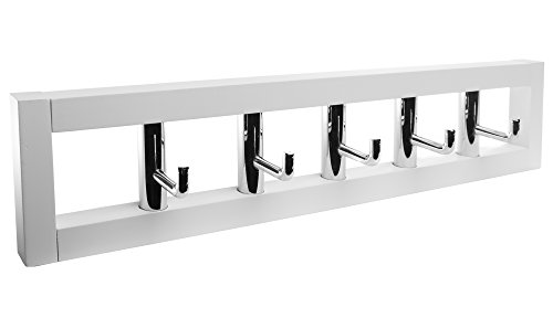 Hookiom 624W Modern coat and hat Rack, Polished Chrome Hooks and White Pine Rail