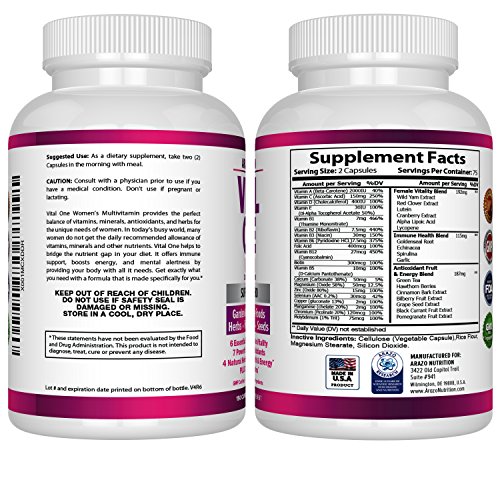 Arazo Nutrition VITA ONE Women's Multivitamin Supplement - 150 Pills - 75 Day Supply