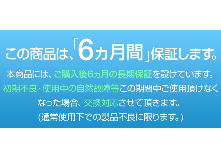 | 保証期間 | お買い上げから6ヵ月間保証 |
