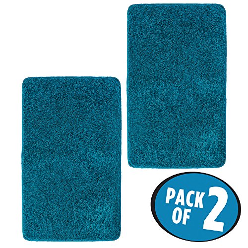mDesign Heathered Soft Microfiber Non-Slip Bathroom Mat/Rug for Bathroom, Vanity, Bathtub/Shower, Dorm Room - Pack of 2, 34" x 21", Deep Teal