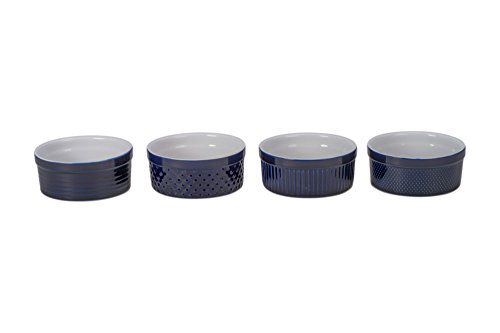 BIA Cordon Bleu 404925+3091KS4SIOC Textured Bakeware Ramekin Dish, Cobalt Blue/White