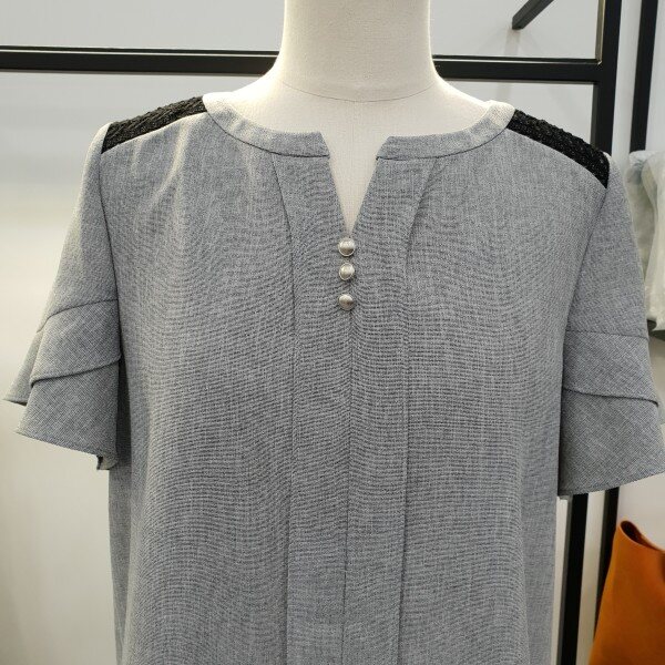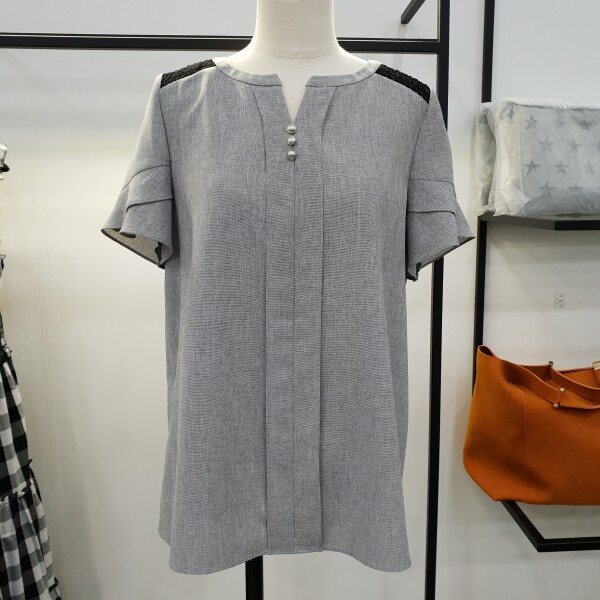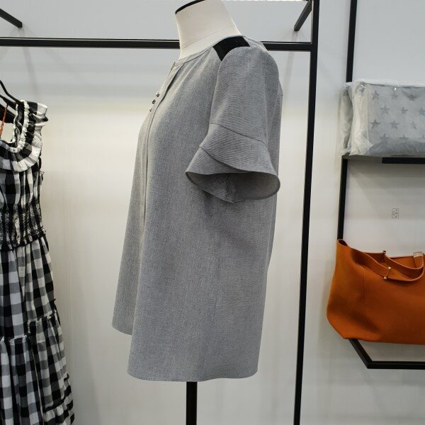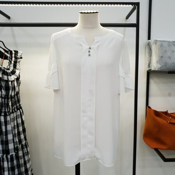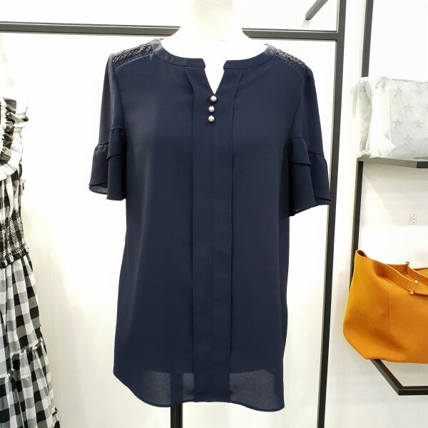소매프릴 단아한무드의 반팔블라우스 *네이비,화이트색상은 실키한소재