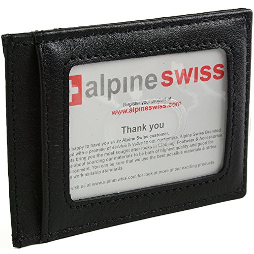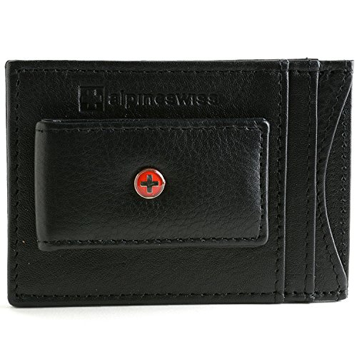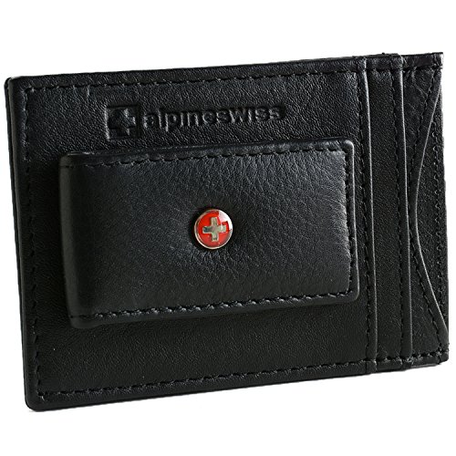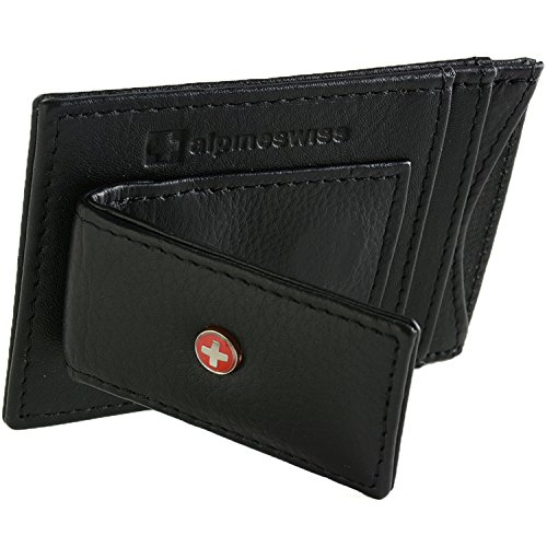 Alpine Swiss Genuine Leather Money Clip front pocket wallet with magnet clip and card ID Case, Black