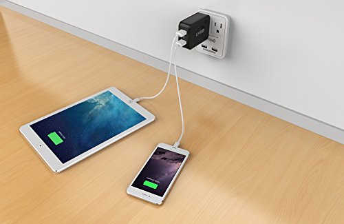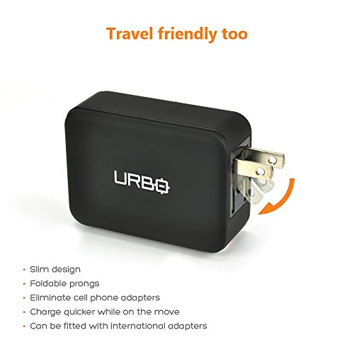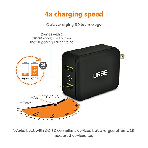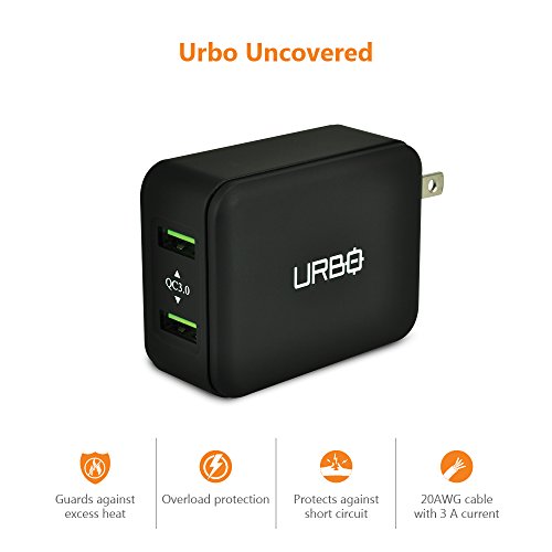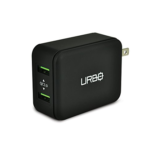 Urbo Quick Charging 3.0 Dual-USB Foldable Travel-Friendly Wall Plug for QC 3.0 Compatible Phones, SmartPhones, GPS and Other USB Powered Devices