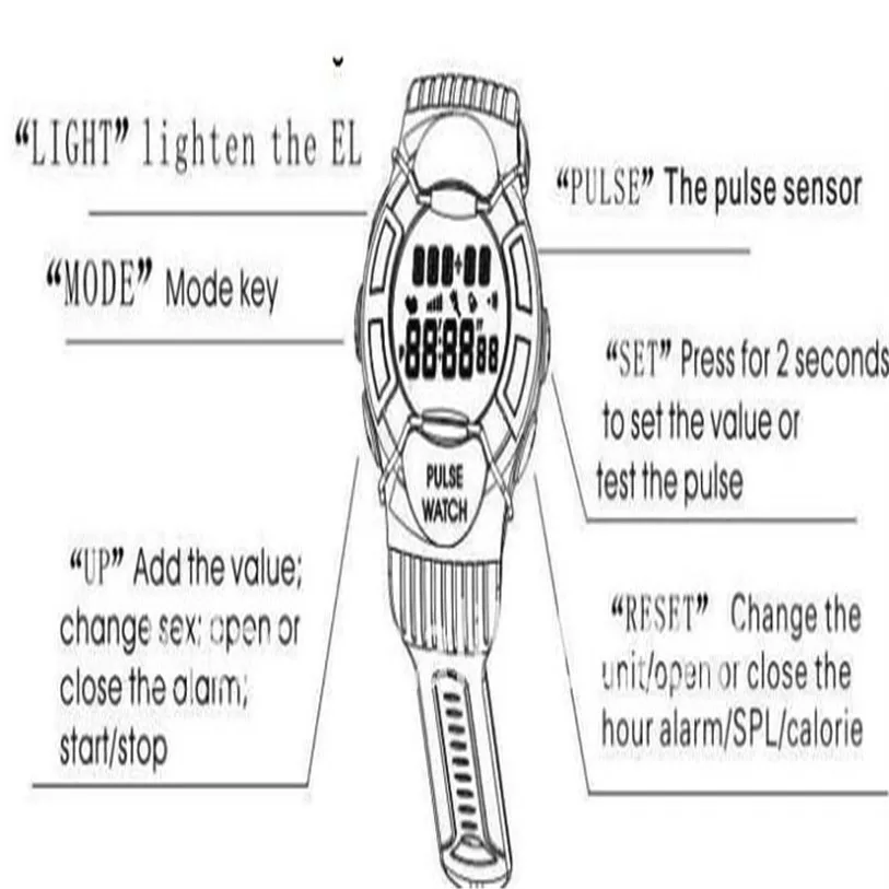 Feature:Stop Watch,Heart Rate Monitor,Water Resistant,Alarm
