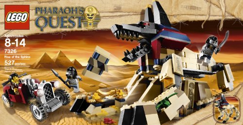 -. Binding : Toy -. Brand : L.E.G.O -. EAN : 0673419145145 -. Feature : Includes Mac McLoud and 2 mummy figures / Fully poseable giant Sphinx stands over 7" tall / Hotrod features space for two / Sphinx Temple features blow-away wall, treasure chamber and Golden Sword / 527 elements -. IsAdultProduct : 0 -. Label : L.E.G.O -. LegalDisclaimer : Item must be in original factory sealed condition for a return. All returns will incur a 20% restocking fee. -. Manufacturer : L.E.G.O -. Model : 4611561 -. MPN : 7326 -. PackageQuantity : 1 -. PartNumber : 7326 -. ProductGroup : Toy -. ProductTypeName : TOYS_AND_GAMES -. Publisher : L.E.G.O -. ReleaseDate : 2011-01-01 -. Studio : L.E.G.O -. Title : L.E.G.O Pharaoh's Quest Rise of the Sphinx 7326