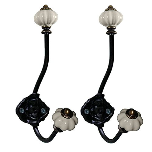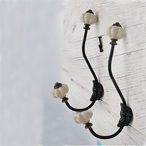 Coat Hooks-Vintage Ceramic Iron Pumpkin Hooks Wall hooks for Coat Jewelry Hat Scarf Home Decoration-2 Pack (Light grey)