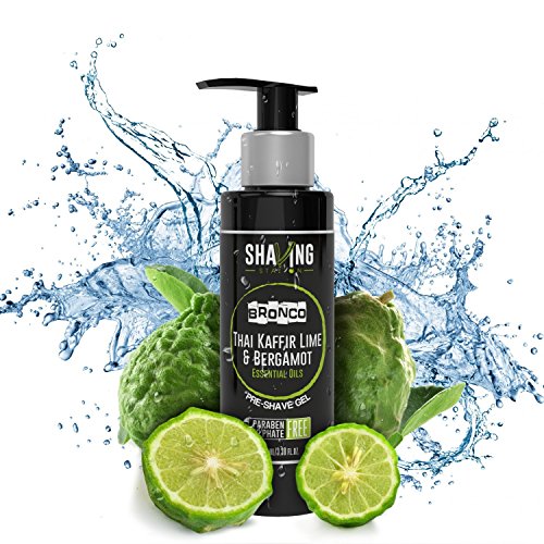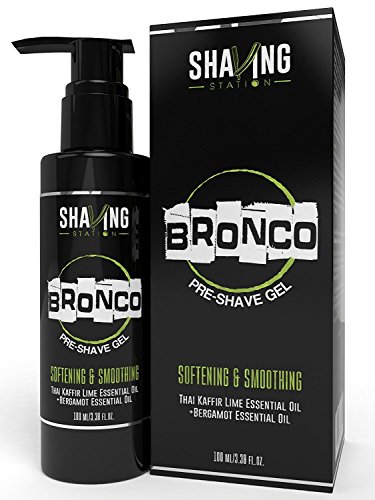 Shaving Station - Beard & Pre Shave Conditioner Gel - Kaffir Lime, Bergamot, Argan Oil - Men’s Bronco Pre-Shave Gel - Soft & Smooth - Aloe-Vera, Vitamin B5 & E - Paraben & Sulfate Free - 3.38 Fl Oz