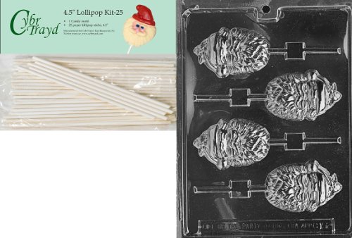 Cybrtrayd 00045St25-C152 Smiling Santa Lolly Christmas Chocolate/Candy Mold with 25 4.5-Inch Lollipop Sticks